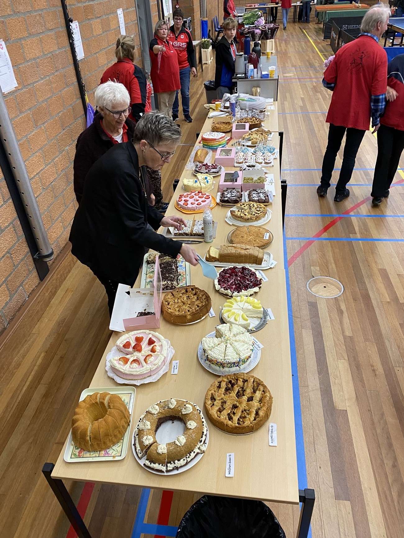 De meest originele taart was van Ans Bonder: een dadel-cranberry tafeltennistafeltaart. De lekkerste taart was de lange-vingertaart van Richard en Carla van der Voort. Zij mochten een oorkonde en een boeketje mee naar huis nemen. Maar iedereen natuurlijk heel erg bedankt voor de geweldige inzet en lekkere taarten!