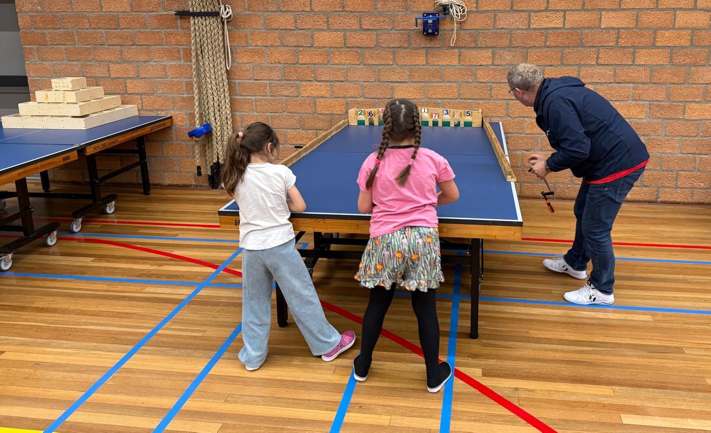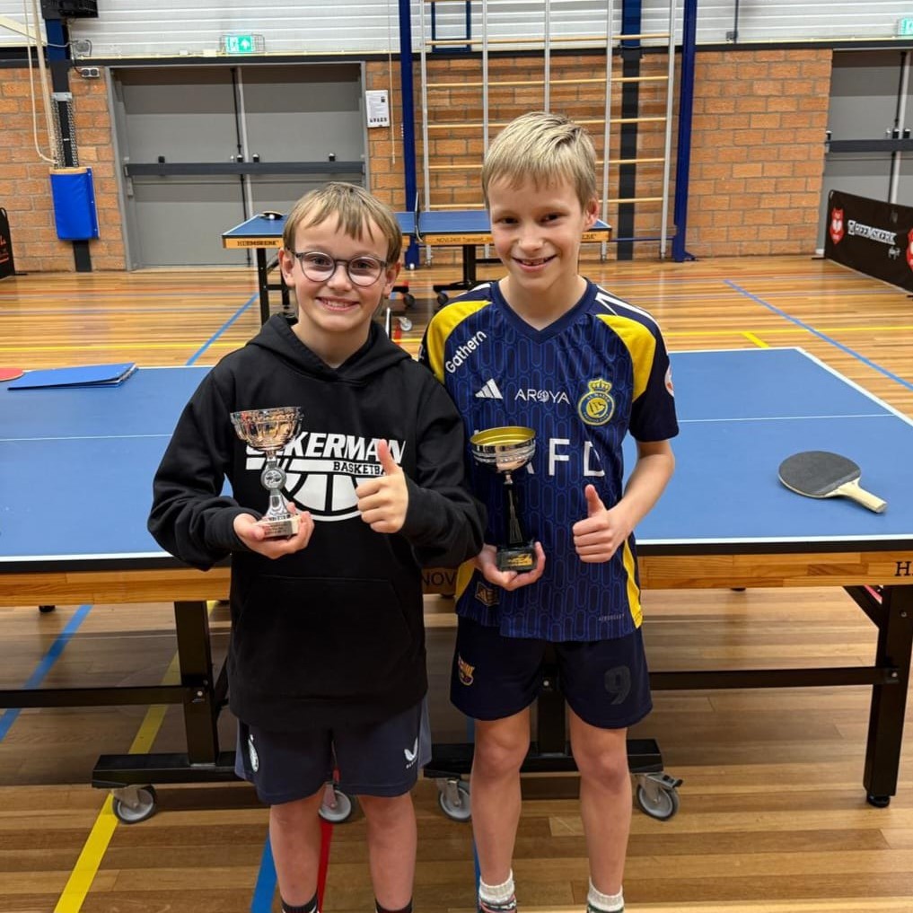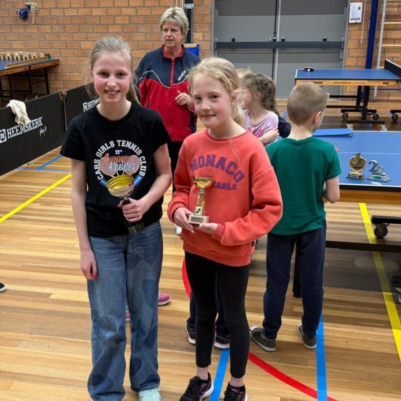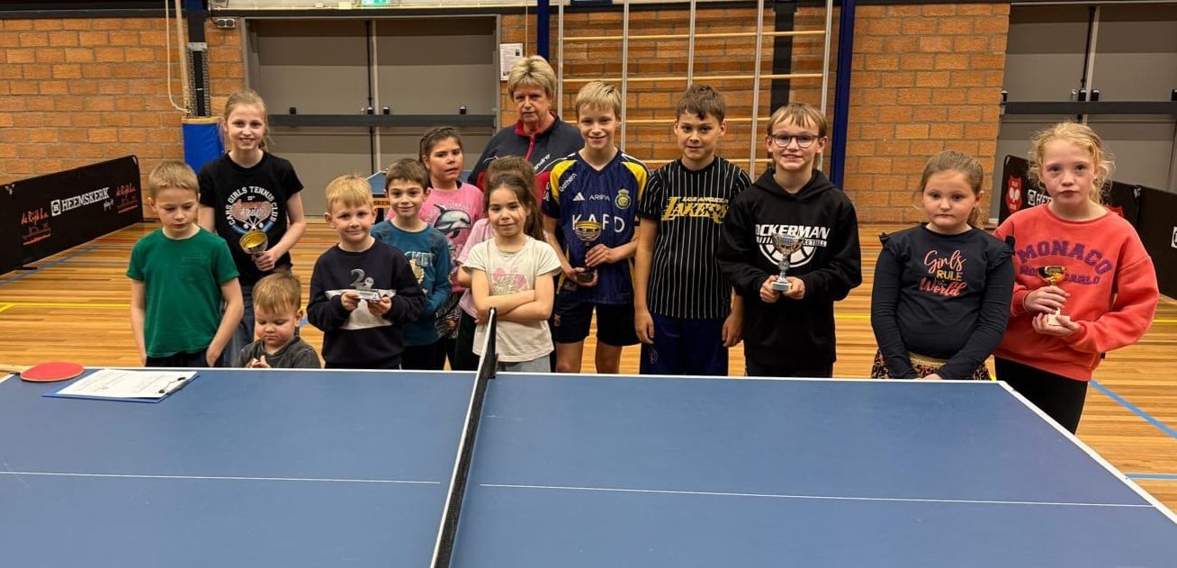 De kinderen uit groep 5 en 6 speelden een 4-kamp door vier meisjes en van groep 7 en 8 waren er drie jongens die met elkaar de strijd aangingen. Kinderen uit groep 3 en 4 deden de spelletjes, wel allemaal aan tafeltennis gerelateerd.